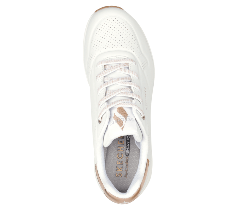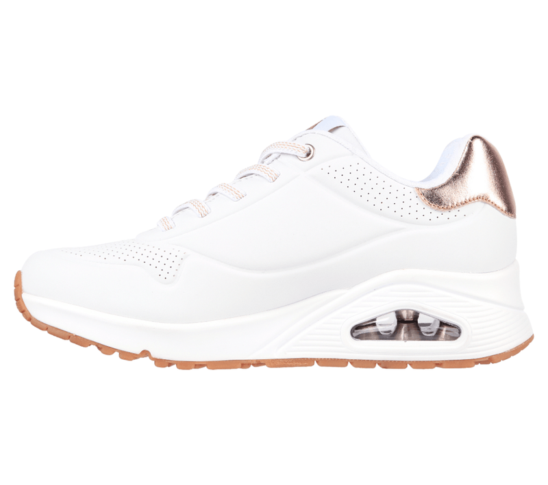 Brilla con estilo con las zapatillas skechers uno - shimmer away para mujer, su diseño elegante y los detalles brillantes hacen que estas zapatillas sean perfectas para destacar en cualquier ocasion, añade un toque de glamour a tu look diario con estas increibles zapatillas.