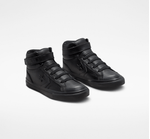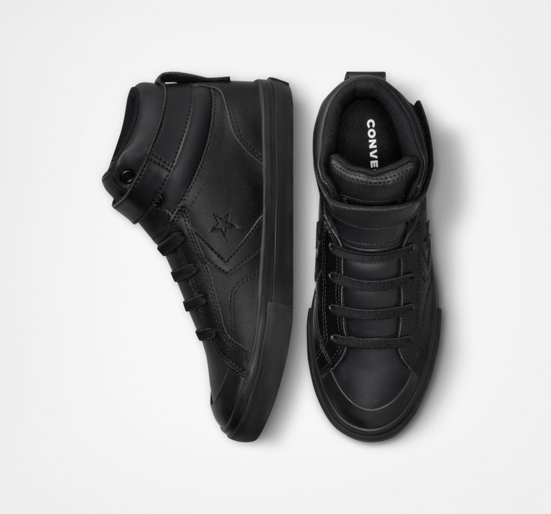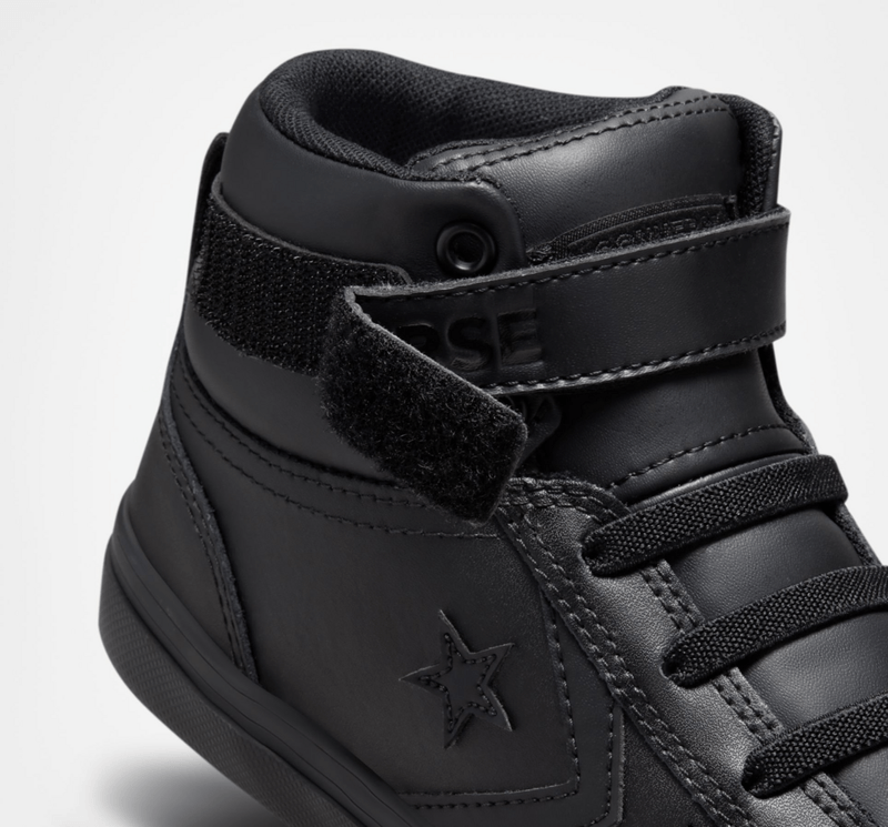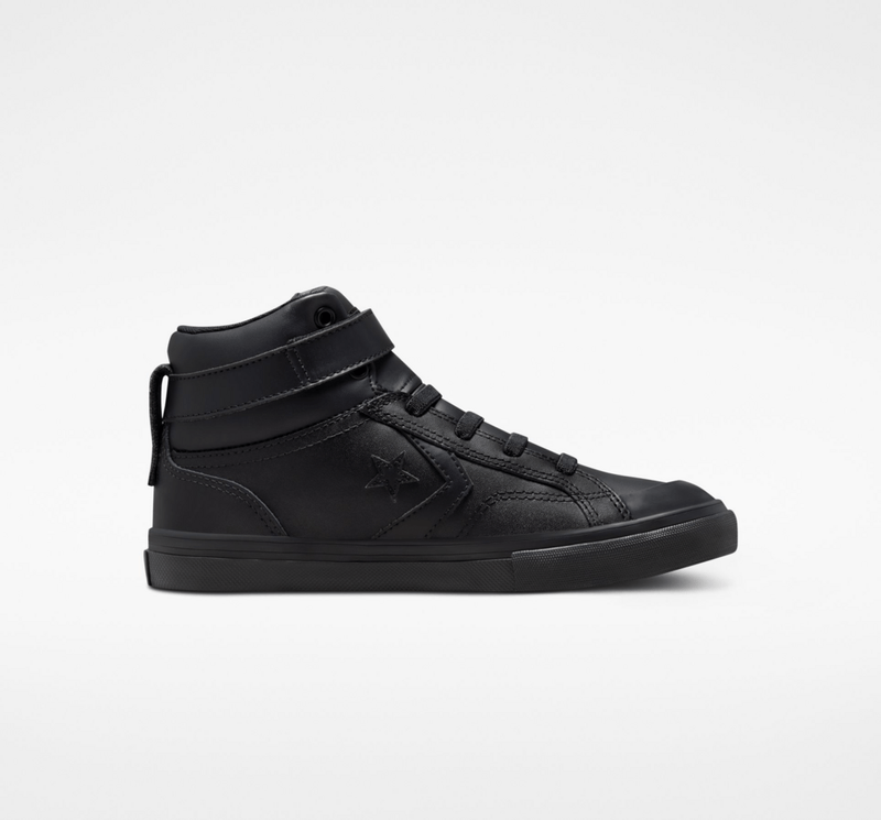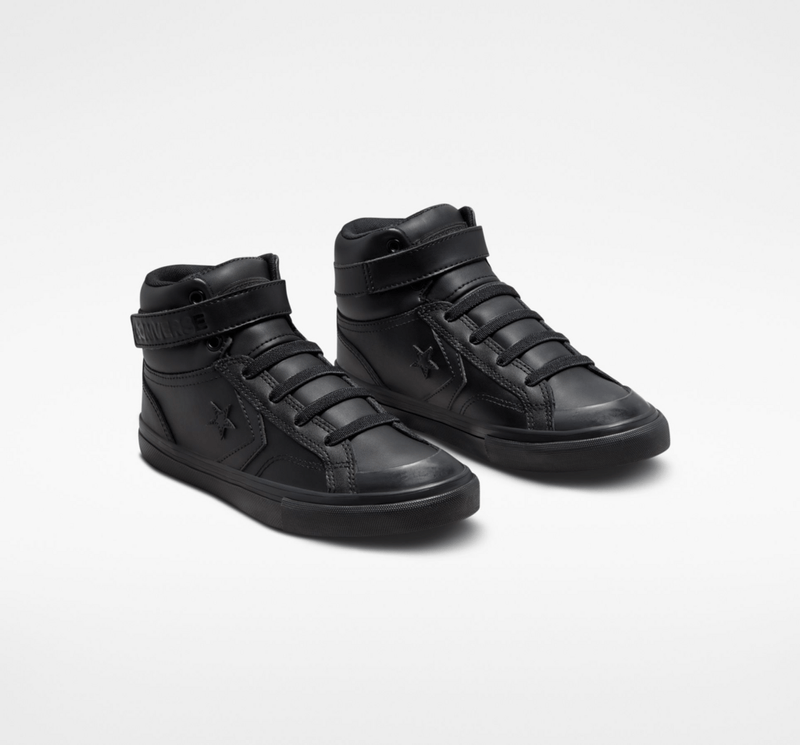 Patio de juegos pro, la pro blaze es una silueta de calle inspirada en detalles deportivos, ahora con un tamaño reducido solo para niños, con puntadas y costuras suavizadas para maximizar la comodidad, la parte superior de cuero negra monocromatica actualiza el look para la temporada y agrega una nueva capa de durabilidad, la lengüeta elastica y la tira ajustable en el tobillo facilitan ponerselos y quitarselos.