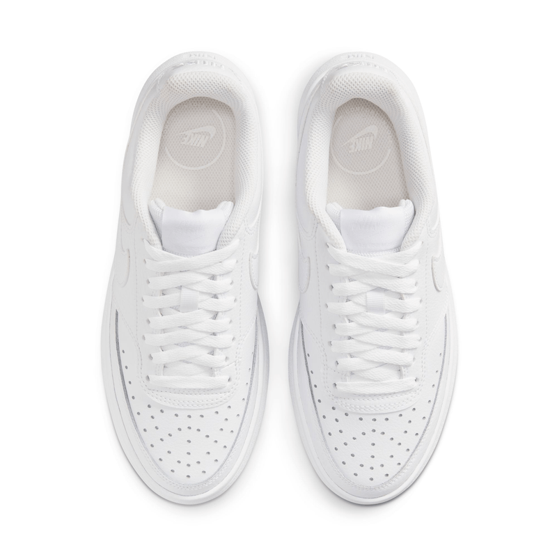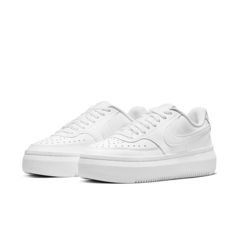 Reinventado a su manera, sube el nivel con el nike court vision alta, el diseño moderno combina cuero en la parte superior con el levantamiento perfecto en la parte inferior, el look de basquetbol mejorado corona tus pies con su lengüeta muy afelpada, el cuero agrega durabilidad, mientras que las perforaciones en la punta agregan una estetica ventilada, la entresuela de espuma levantada y el talon esculpido agregan comodidad moderna, la lengüeta superacolchada tiene una sensacion increiblemente suave, la geometria unica del talon le da un toque al estilo del basquetbol tradicional que se ajusta mejor a la mujer.